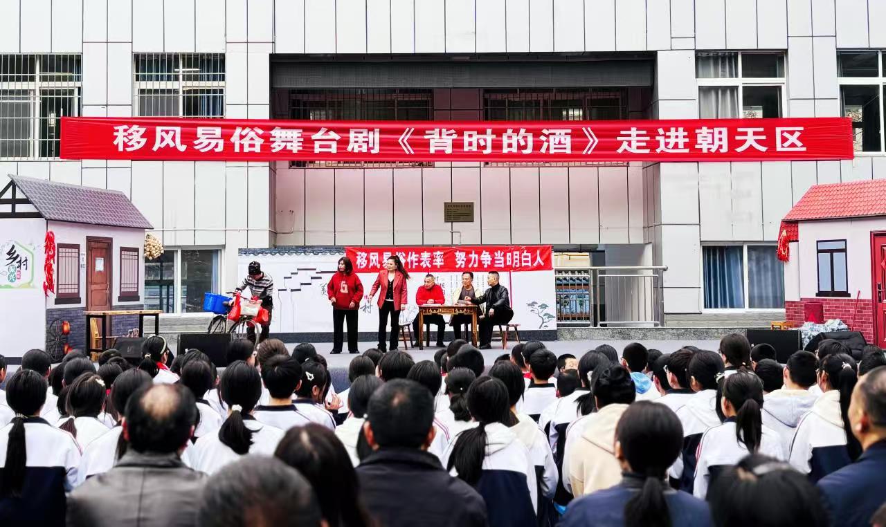 “讲的都是身边事、说的都是身边人,这种方式咱们老百姓听得懂、记得住,还在潜移默化中传递了文明新风。”11月15日下午,朝天区沙河镇小学操场上热闹非凡,移风易俗舞台剧《背时的酒》正在这里精彩上演,现场掌声和欢笑声此起彼伏,大家一边交流感叹一边不忘拿出手机记录精彩的表演瞬间。