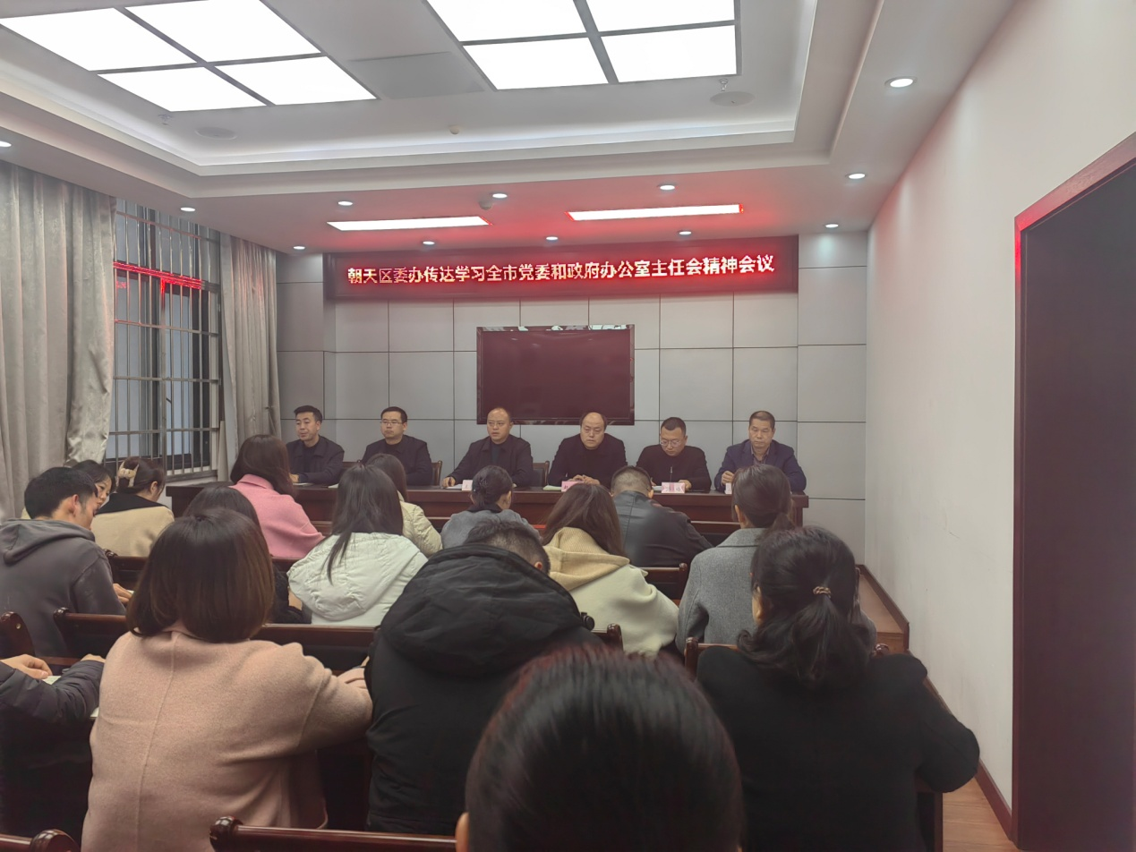 11月22日,朝天区委办公室召开专题会议,传达学习全市党委和政府办公室主任会议精神,并就宣传、贯彻、落实进行安排部署。