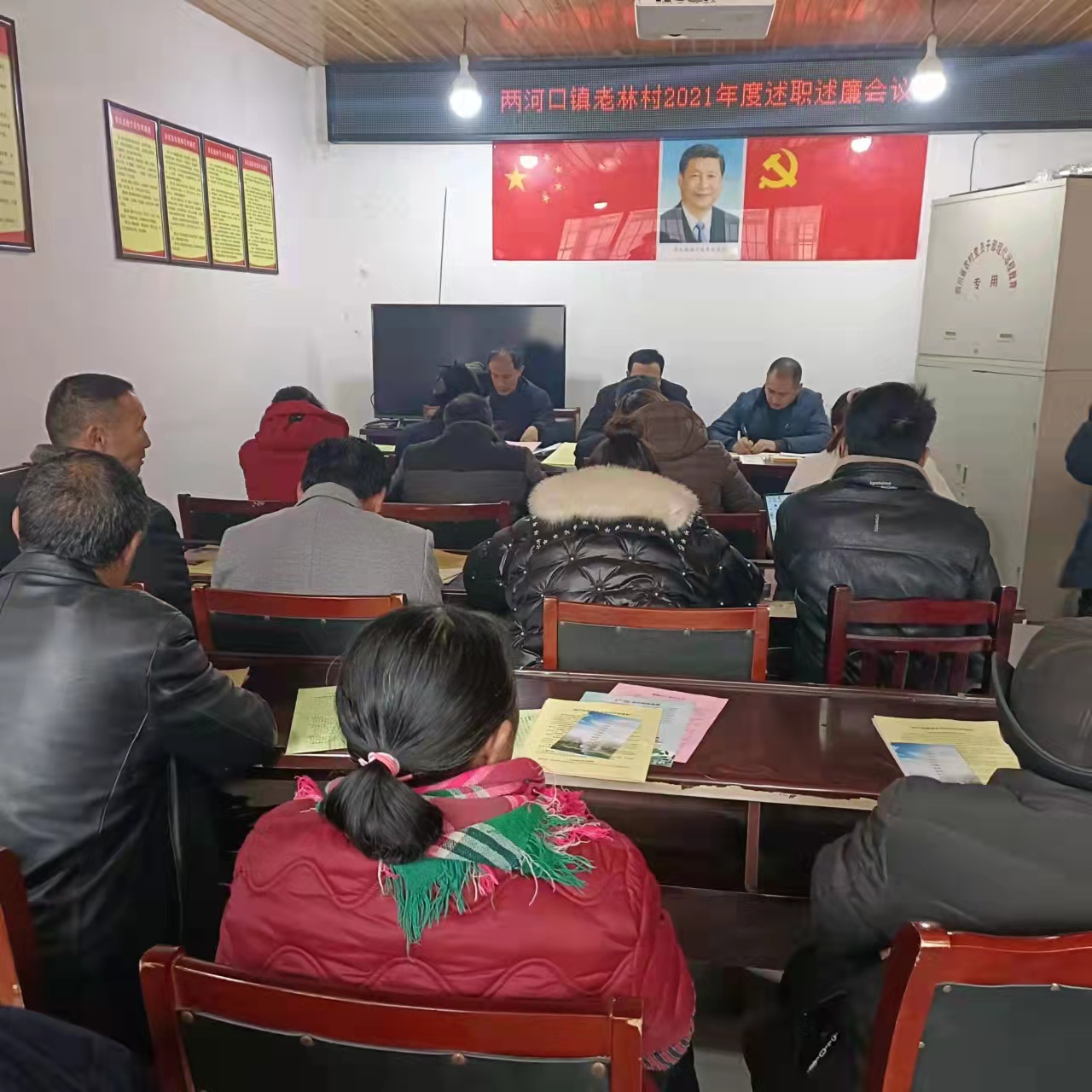 两河村召开会议前,村干部与联村干部一起参观了村史馆,通过了解两河村历史,观看一件件老物件,真切感受到了两河村在党的领导下发生的巨变,让大家从了解村史入手认识到了党风廉政建设的重要性和紧迫性。