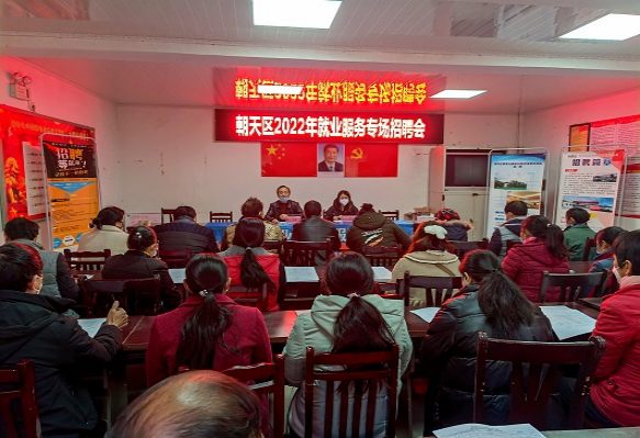 12月9日上午,天气晴好,水磨沟镇水磨沟社区村委会议室里,朝天区2022年就业服务专场招聘会正在进行中。