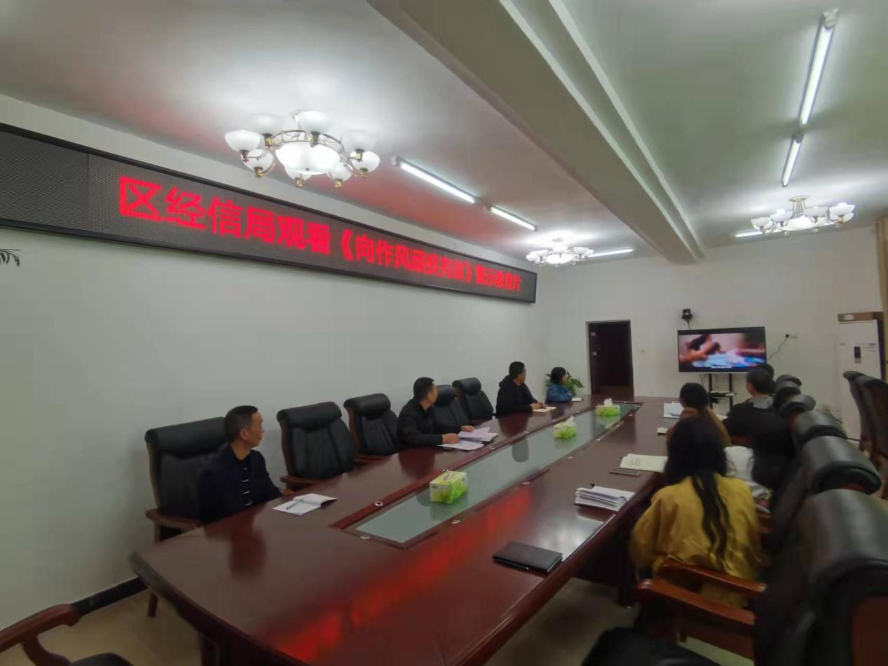为持续深化干部纪律作风整顿工作,3月25日上午,区经信局结合“凝心聚力·担当实干”主题党日活动,传达学习了全区干部纪律作风整顿工作推进会议精神,安排部署了持续深化干部纪律作风整顿工作,并学习了先进事迹、观看了警示教育片。