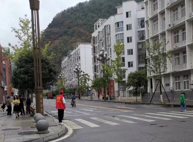 “文明出行”交通劝导。志愿者们在凯城华府小区路段引导车辆、行人遵守交通法规,及时提醒并制止非机动车和行人横穿马路等不文明行为,引导广大群众养成良好的交通出行习惯,共同营造安全、有序、文明的城市交通环境。
