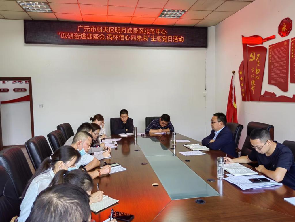 9月30日,区明月峡景区服务中心党支部以“砥砺奋进迎盛会·满怀信心向未来”为主题的主题党日活动。全体党员干部职工参加。