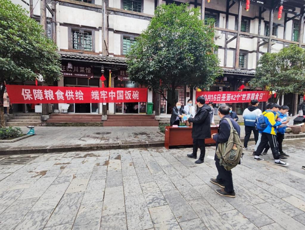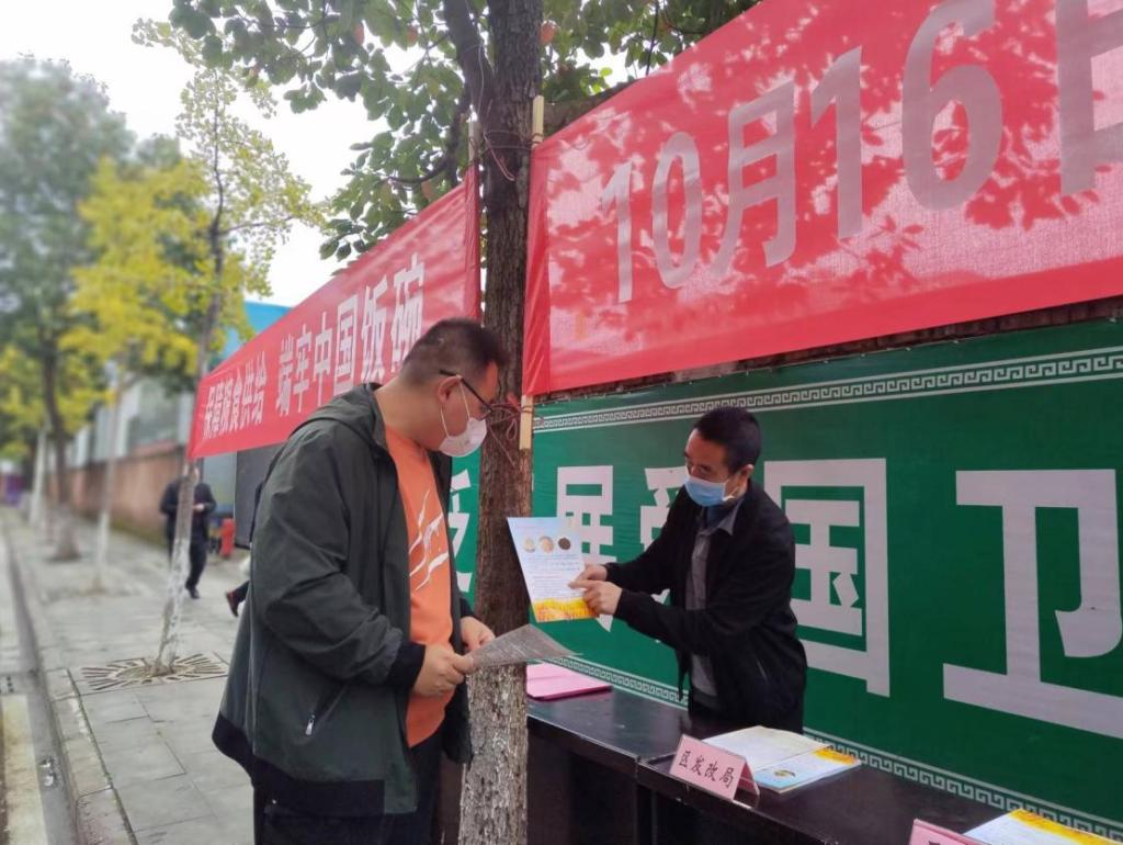 今年10月16日是第42个“世界粮食日”,10月16日所在周为全国“粮食安全宣传周”,主题分别是“不让任何人掉队,更好生产,更好营养,更好环境,更好生活”和“保障粮食供给,端牢中国饭碗”。10月14日上午,区发展改革局联合区农业农村局、区教科局、区妇联开展了主题宣传活动并发出了“爱粮节粮,反对浪费”的倡议,曾家镇人民政府、朝天区裕宏粮油购销有限公司对本次宣传给予了大力的支持。