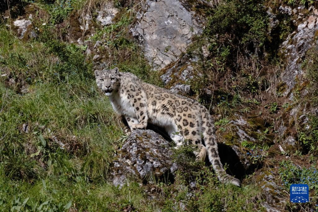 这是在青海省玉树藏族自治州杂多县境内的昂赛大峡谷拍摄的雪豹(8月6日摄)。新华社发(姚牧阳 摄)