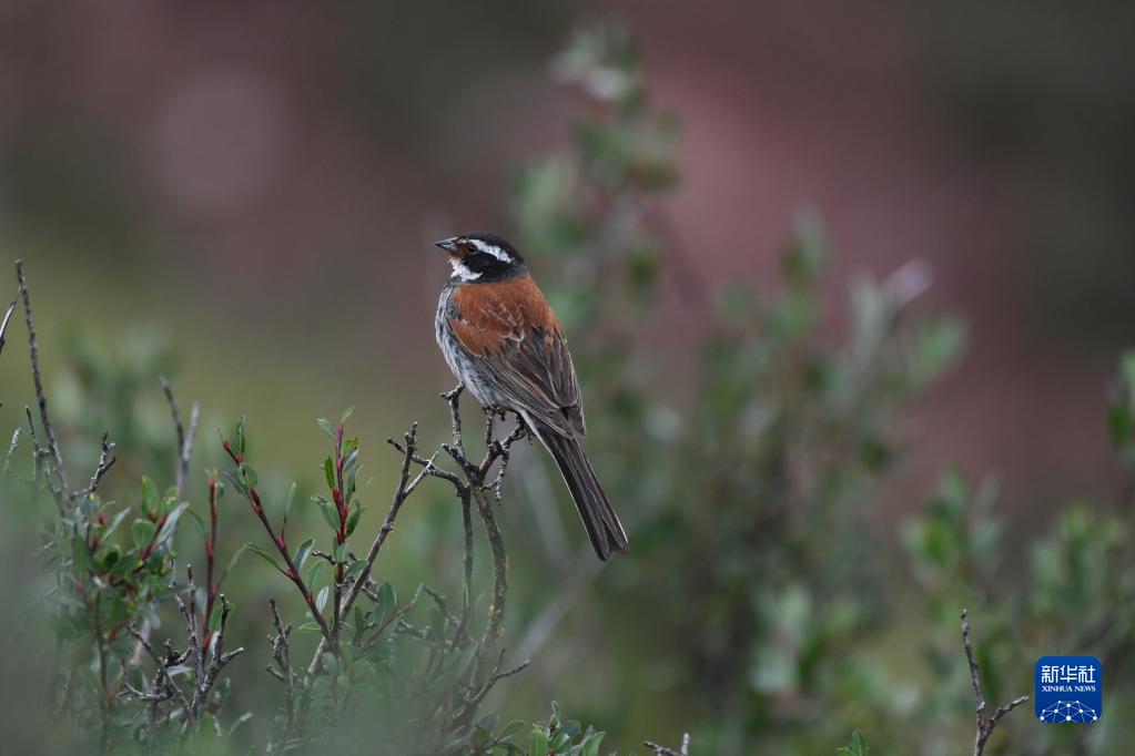 这是在青海省玉树藏族自治州杂多县境内的昂赛大峡谷拍摄的藏鹀(8月6日摄)。新华社发 (齐凯 摄)