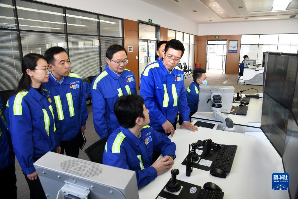 张连钢(右三)在青岛港带领技术团队进行新课题研究(2020年12月27日摄)。新华社记者 李紫恒 摄