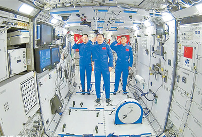 载人航天不断取得新突破,先后将14位航天员、23人次送入太空,取得了连战连捷的非凡成就。图为2021年6月,中国人首次进入自己的空间站。