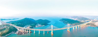 深化两岸融合发展,实现同胞心灵契合。我们对台湾同胞一视同仁,将继续率先同台湾同胞分享大陆发展机遇,为台湾同胞台湾企业提供同等待遇,让大家有更多获得感。图为2020年12月全线通车的平潭海峡公铁大桥,该桥为京台高铁规划的一部分。