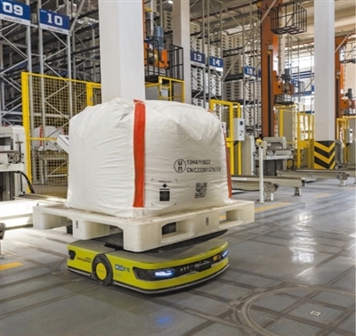 近年来,江西省新余高新区加快构建数字经济生态体系,推动数字技术与实体经济深度融合。图为高新区锂电新能源产业园的车间内,AGV转运机器人在执行打托备货工序。