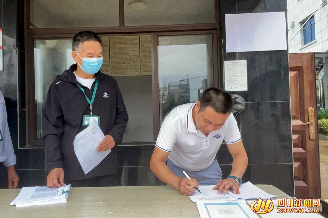 扫场所码,进入高竹新区管委会,院子里停着许多川X和渝B的车辆,在一楼的高竹新区税费征管服务中心,有几名办税人员正在自助办理税费。“请在这里把你身份证上的信息填上去。”“请问你打算用哪种缴费方式进行缴费?”自助办税服务区内,工作人员耐心地指导办税人员,一名大叔办税完毕,收拾资料准备离去。