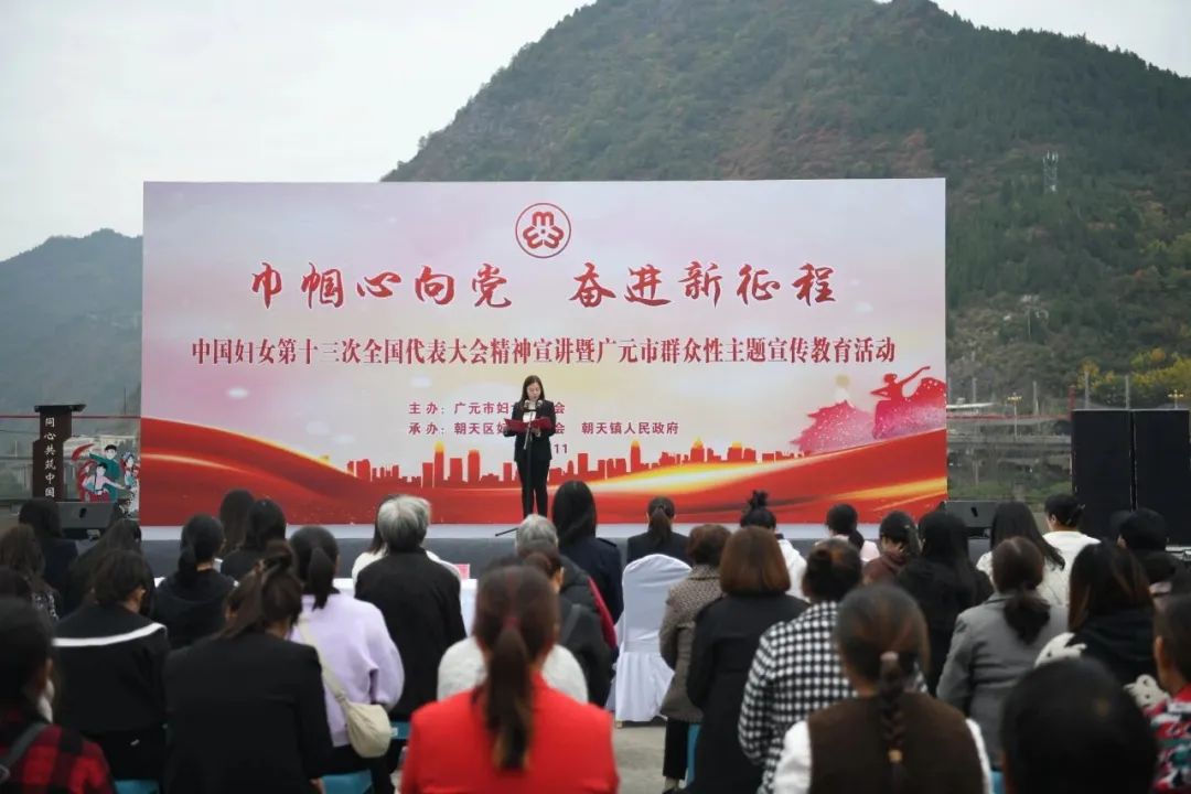 11月8日,中国妇女第十三次全国代表大会精神宣讲暨广元市群众性主题宣传教育活动在朝天区举办。市妇联副主席徐胜兰参加活动,朝天区人民政府副区长徐笑梅致辞。