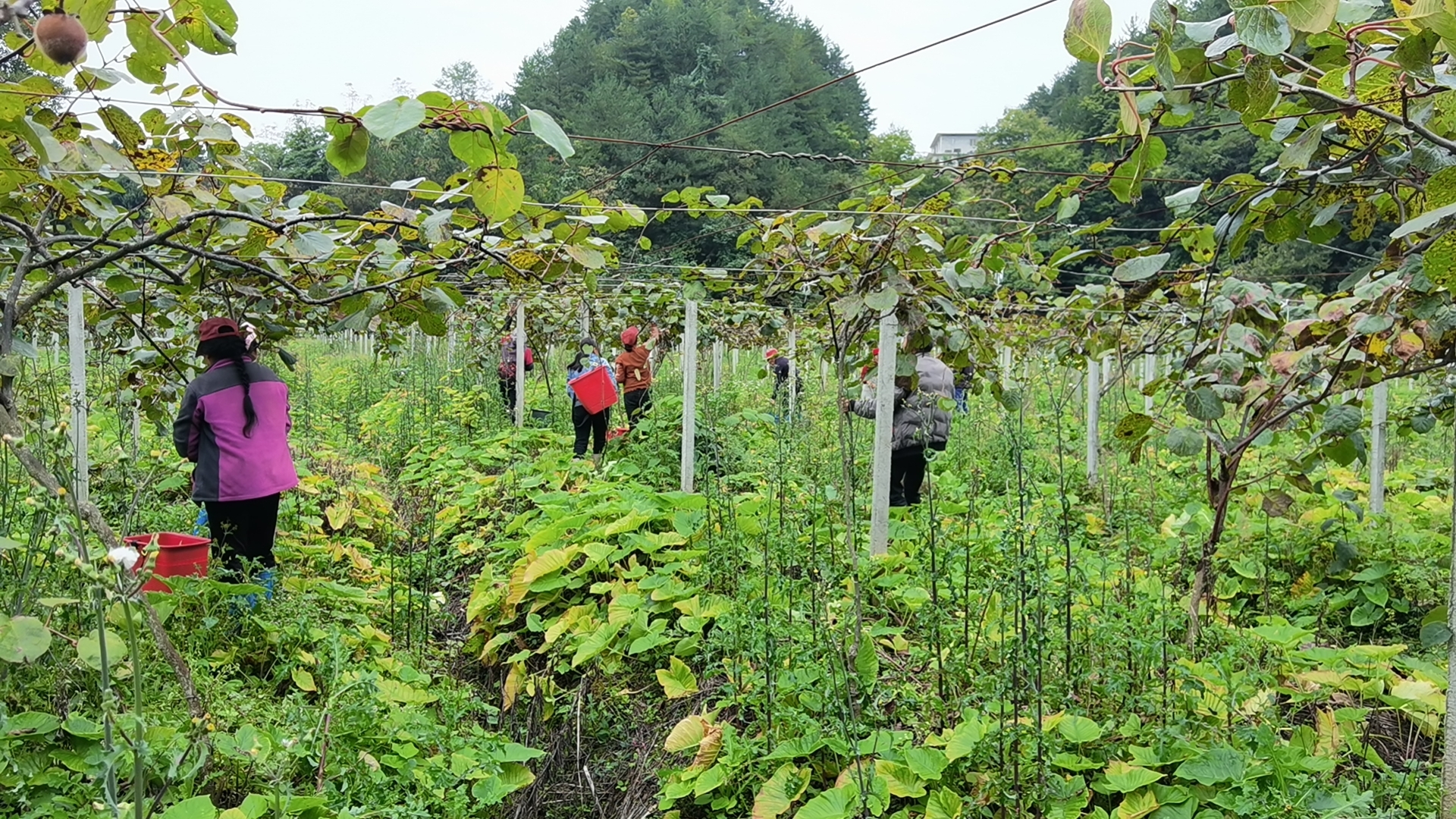 10月8日,走进广元市朝天区麻柳乡石板村猕猴桃产业园区,只见猕猴桃架藤蔓上沉甸甸地挂满了一颗颗饱满的果实,与林下种植的茂盛的附片植株构成了一幅喜人的丰收图景。村民们在园区内来回穿梭,摘果、搬运、装筐……忙碌的身影印证着丰收的喜悦。