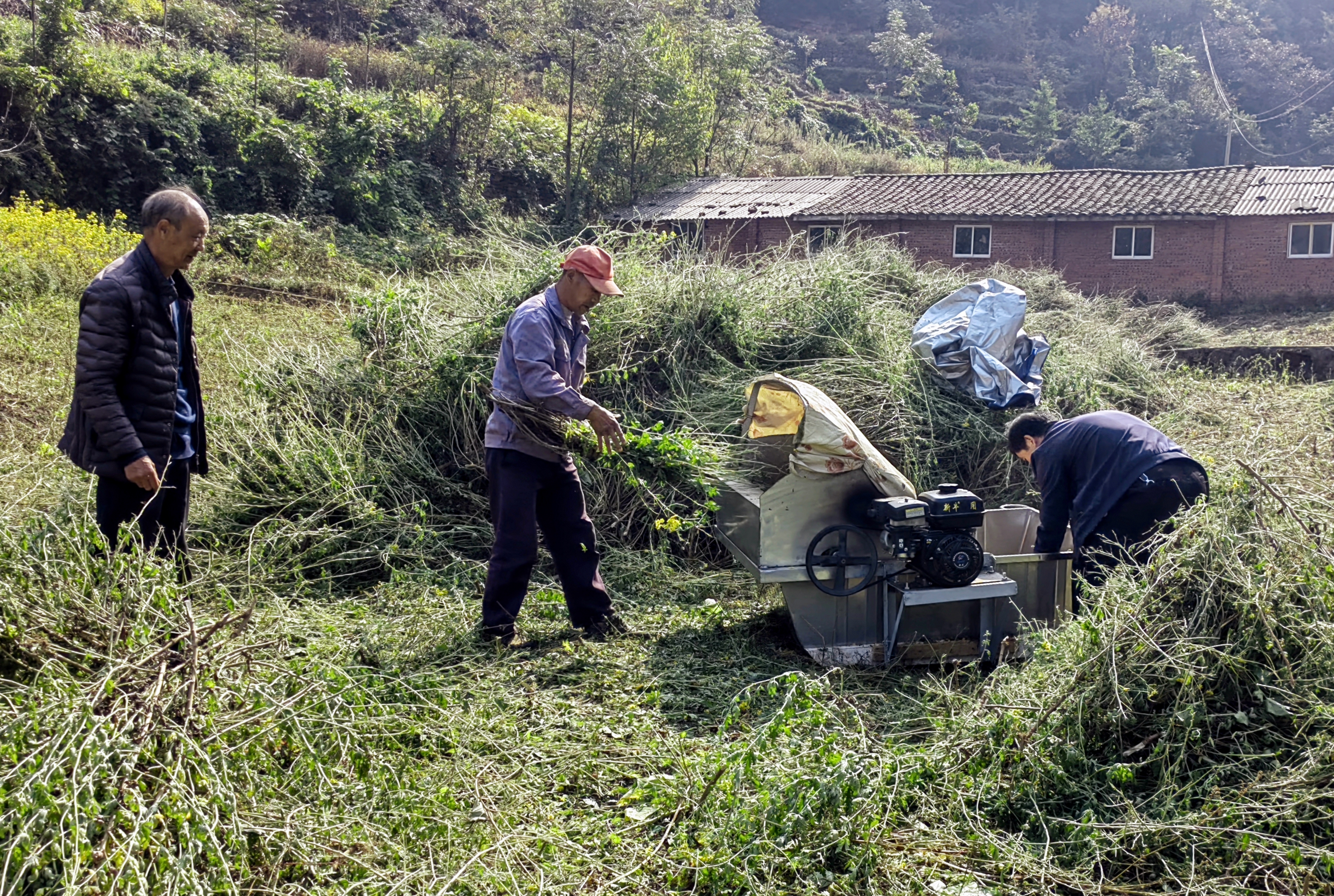 将堆放的野菊花拿起,送到采摘机的“口中”,一搅一转间,机器便将菊花“摘”下……花田旁,园区负责人刘泽清熟练地操作着采摘机,不一会儿,旁边就堆起了野菊花的花枝和花茎。“野菊花的全身都是宝,机器采收将杆花分开,用切断机把野菊花的杆切成段后,杆也可以用于制药。”刘泽清介绍,考虑到野菊花的采摘期仅有一个月左右,人工用工量大,他们新购置了两台采摘机、两台杀青机和一台切断机,用上机器后,采摘能节约一半的人工,大大提高了效率。同时,村上还建有烘干房,野菊花通过杀青烘干后,就可以直接进入市场销售。