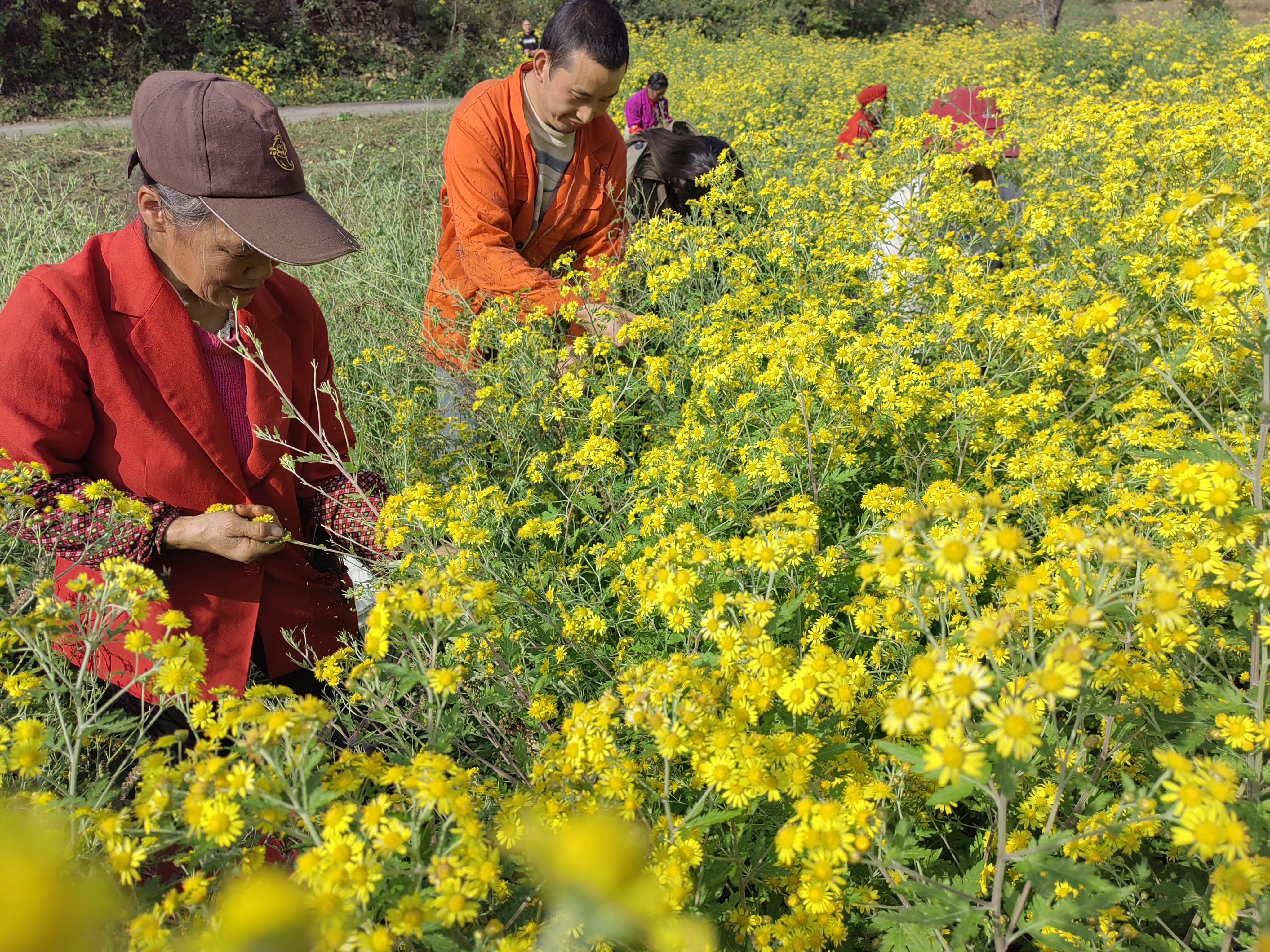 美丽的野菊花不仅为当地增添了一道亮丽的风景,也为群众带来了一条致富增收的新渠道。近年来,麻柳乡立足丰富的生态资源,深入探索中药材产业发展,依托广元市朝天区誉兴生态农业有限公司等企业,积极规划发展野菊花产业,今年野菊花干品预计产量达20吨,产值达60万元,解决当地群众就业200余人。