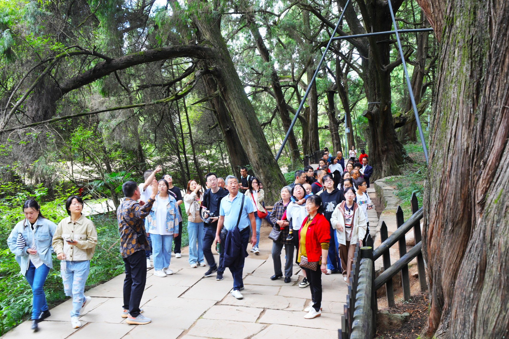 广元将聚力打造生态文明新典范、文化传承新标杆、文旅融合新样板、康养产业新高地,推动高质量发展。图为游客在翠云廊景区走古道、赏古柏。高志农摄