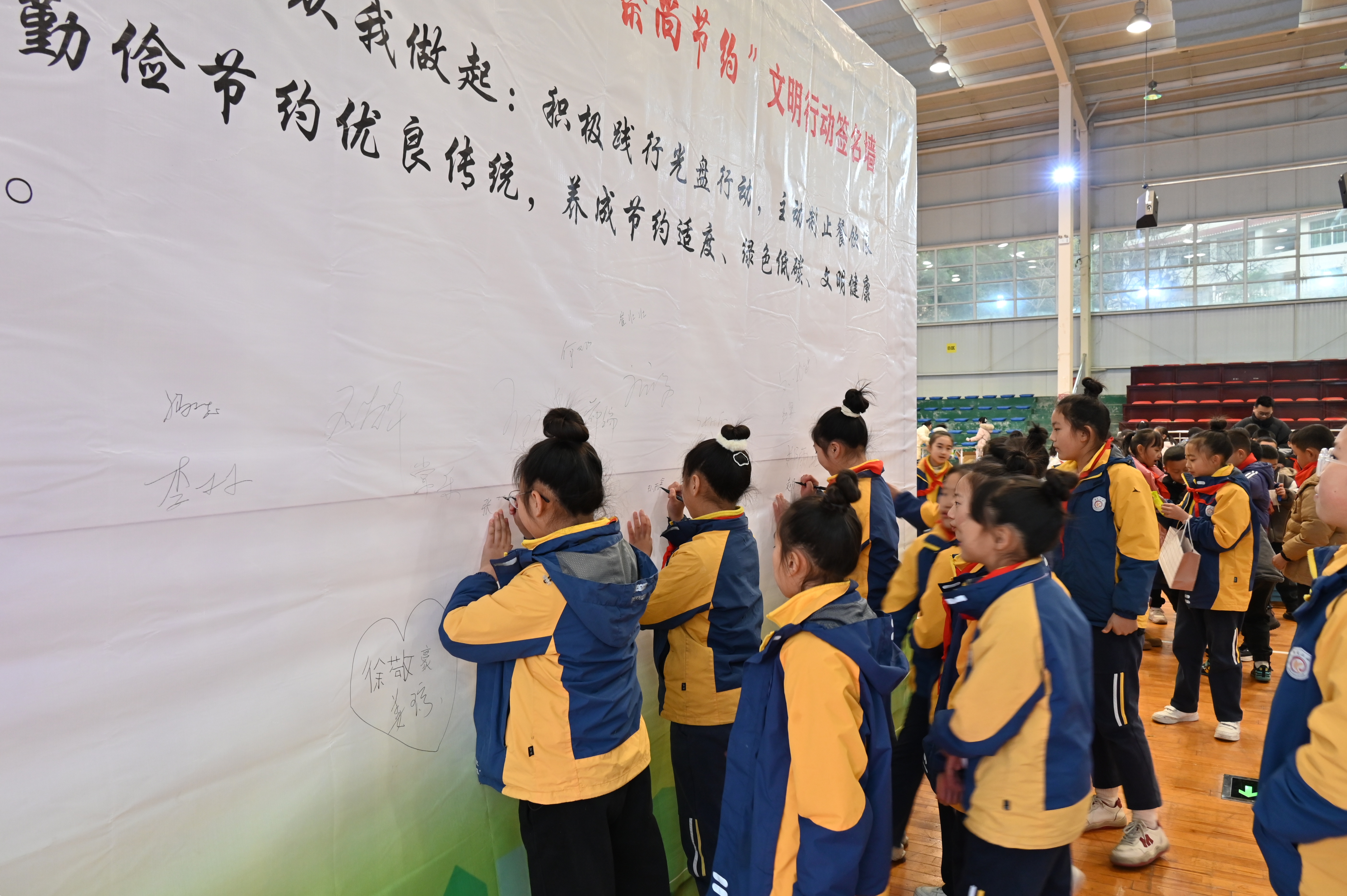 活动现场宣读了《“反对浪费·崇尚节约”文明行动(倡议书)》,号召广大市民争做反对浪费、崇尚节约的实践者、传播者、示范者;餐饮行业代表、市民代表现场进行了“践行光盘行动、反对餐饮浪费”的承诺,参加活动的学生、职工、群众纷纷拿起签字笔,在文明行动签名墙上郑重签下自己的名字。