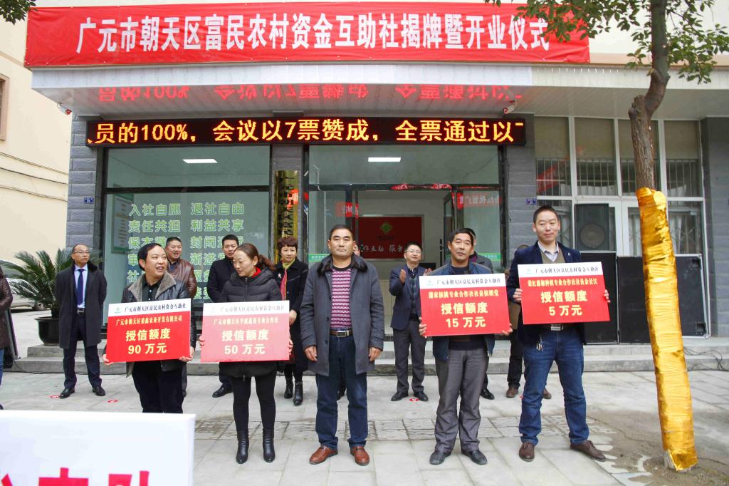 朝天区富民农村资金互助社由广元市朝天区小山窝藤椒种植专业合作社等11个单位发起,经省委农工委、省供销联社批准成立,是我区第一家农村资金互助社,是全省12家农村资金互助社试点之一。现有社员320余名,已募集股金216.27万元。互助社向社员提供贷款服务,社员用最低100元作为入社股金,可享受其股本金额3至10倍的信用贷款额度。