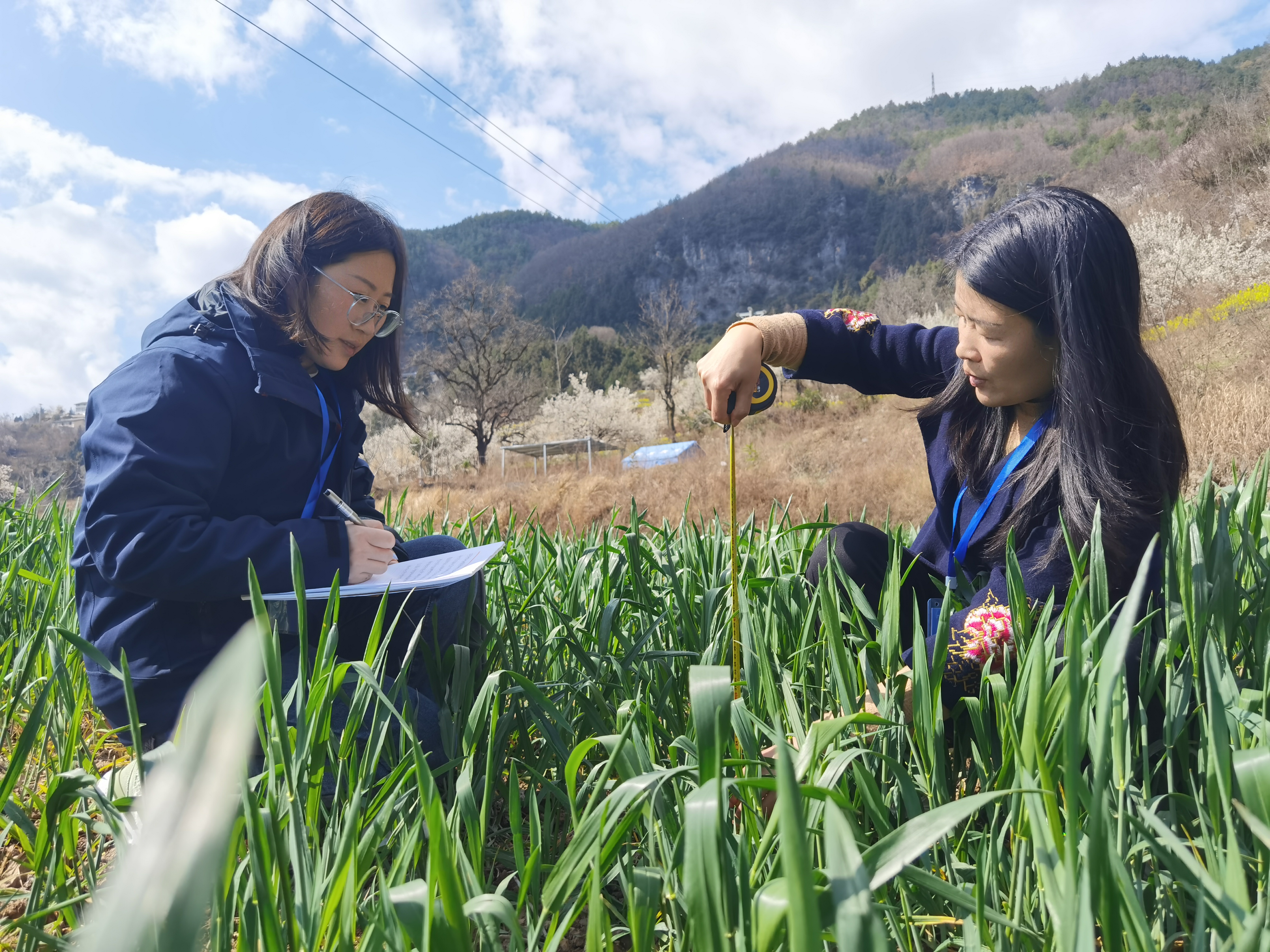 “今年冬天比较干旱,但最近接着下了几场雨,麦子长势还不错,小麦丰收有希望咯!”在朝天镇龙门村,大片大片的麦田里,嫩绿色的麦苗随风摇摆、均匀健壮,春风吹过,田地里散发着阵阵清香,透着丰收的气息。只见调查人员选定地块后,手拿卷尺对小麦生长高度进行测量,并通过仔细查看小麦根系以及叶片色泽,判断是否有病虫害情况,同时,还向农户询问播种面积及时间等,最后将调查情况一一记录归档。