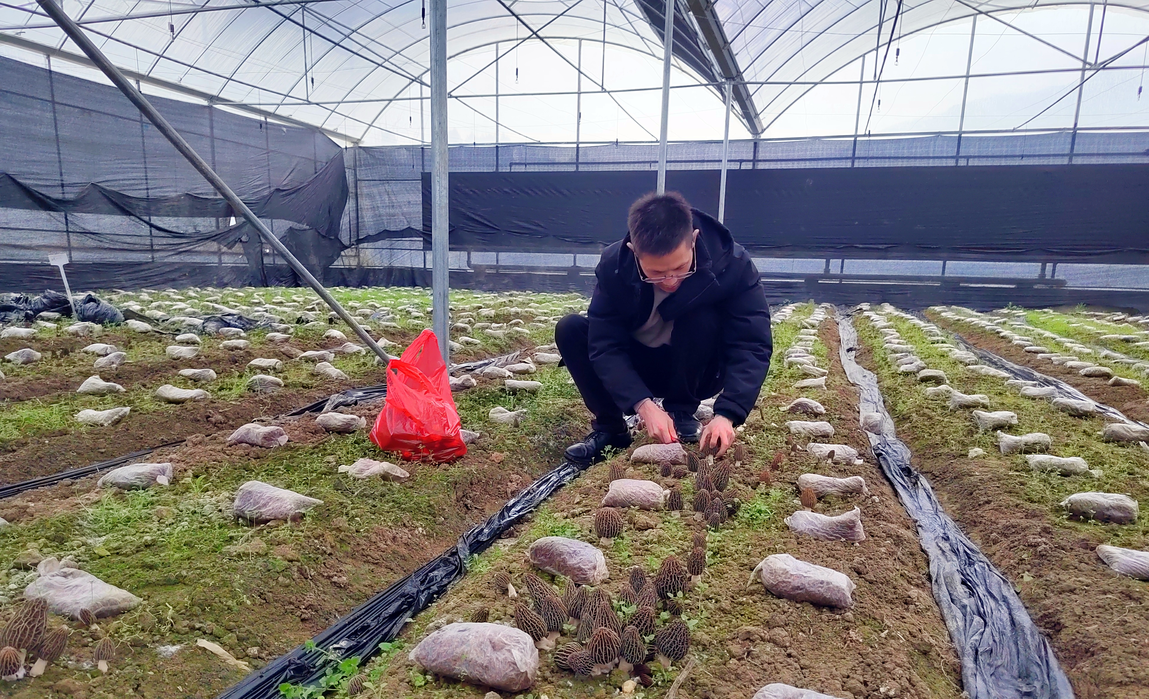 丁彬瀚正带领着村民们,手持小刀小心翼翼地穿梭其中,快速采收羊肚菌,丰收的喜悦溢满脸庞。另一边,还有村民专门对这些羊肚菌进行分拣、装箱,将它们第一时间运往各地市场,以满足消费者新春尝鲜的需求。