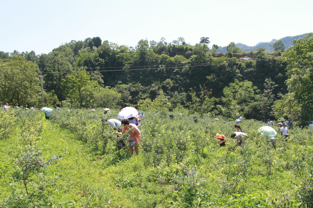 启动仪式上,当地群众用动听的歌声和欢快的舞蹈表达着对远道而来客人的欢迎。倘佯在一簇簇紫蓝色“宝石”映衬的绿海中,信手拈一颗娇艳欲滴的蓝莓,甜在嘴里,乐在心里……尽管天气有些炎热,但丝毫没有影响游客们的热情,采摘者默契配合,摘了一盒又一盒,有的索性摘下蓝莓坐在田坎上慢慢品。