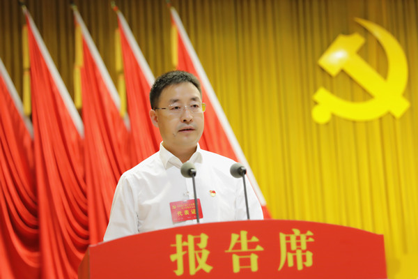 余飞宇代表七届区委向大会作报告张骏主持会议