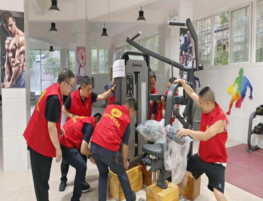 区委办组织陈家河片区包联单位帮助工会转移健身器材