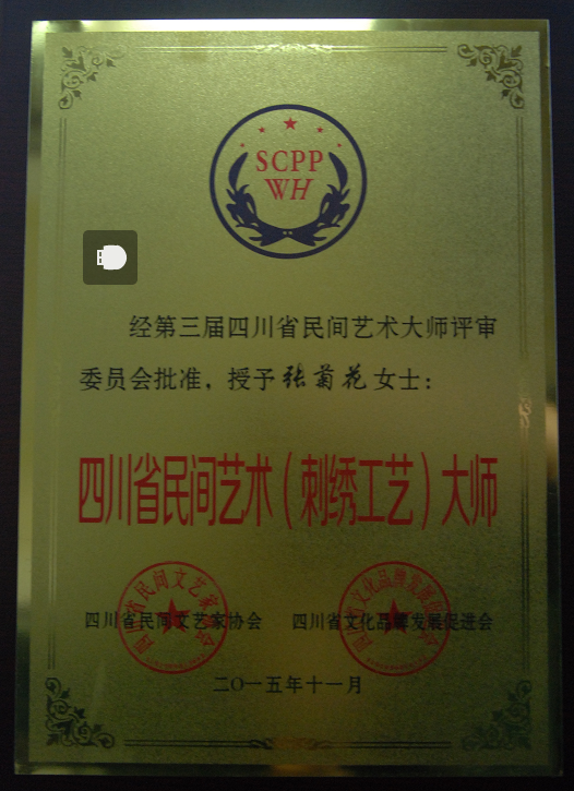 2015年11月,朝天区文化馆对国家非物质文化遗产麻柳刺绣传承人张菊花女士参评第三届四川省民间艺术大师的积极申报,四川省民间文艺家协会,四川省文化品牌发展促进会综合评审,第三届四川省民间艺术大师评审委员会批准,授予张菊花女士第三届“四川省民间艺术大师(刺绣工艺)大师” 荣誉称号。