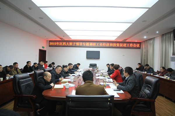 本网讯(谢翀)2月9日上午,我区召开2015年四大班子领导专题调研工业经济和投资促进工作会议。会议全面总结我区2014年工业经济和投资促进工作,对2015年工业经济和投资促进进行安排部署。区委书记蔡邦银,区委副书记、区长伏玉琼,区人大常委会主任梁黎,区政协主席张晓春等四大班子领导出席会议。蔡邦银强调,各级各相关部门要进一步强化认识,加倍努力,以“三实”精神为引领,扎实做好2015年工业经济和招商引资各项工作。