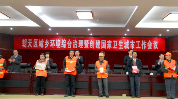 会议由区委常委、纪委书记黄光明主持;区委常委、副区长徐骁宣读《中共广元市朝天区委朝天区人民政府关于表扬朝天区2012年城乡环境综合治理先进集体和先进个人、优秀环卫工人的通报》。