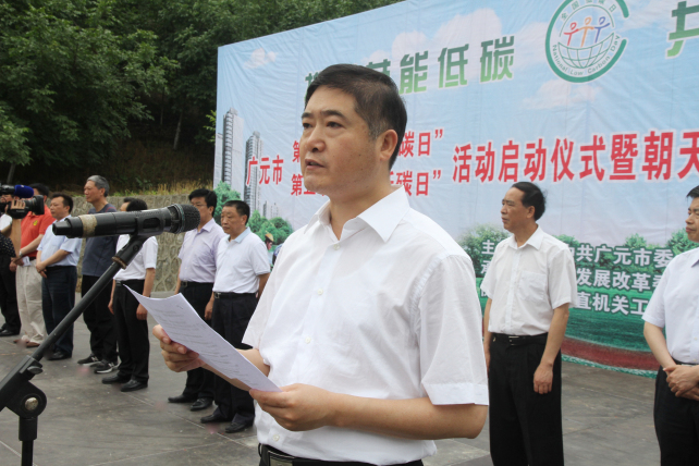 蔡邦银在致辞中指出,生态是生存之本,低碳是发展之要。作为长江上游重要生态屏障的组成部分,朝天区高度重视节能低碳发展,区委、区政府围绕建设“美丽广元、幸福家园”的目标任务,按照全市国家第二批低碳试点城市建设部署要求,认真践行低碳发展战略,扎实推进节能减排工作,积极推广新能源,大力开展水土保持综合治理,着力推动绿色发展、循环发展、低碳发展。他表示,朝天区将继续深入贯彻市委市政府实施低碳发展战略要求,以开展教育实践活动和这次低碳日活动为契机,以节能低碳为主题,健全促进低碳发展的体制机制,努力构建低碳经济、低碳建筑、低碳交通、低碳生活、低碳环境、低碳社会“六位一体”的发展新格局,为建设“美丽广元、幸福家园”作出朝天积极贡献。