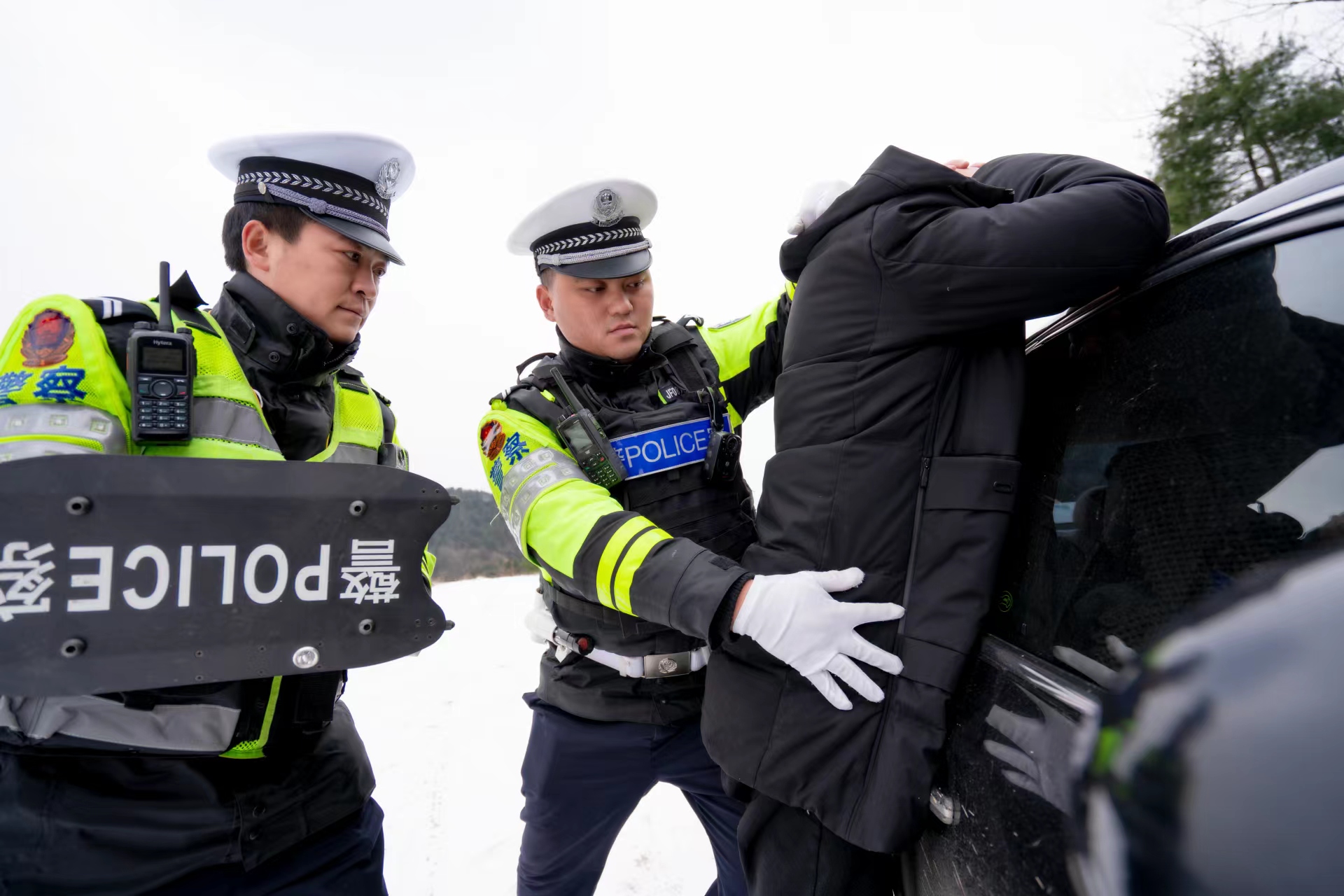 王齐麟(右)正在和同事执勤