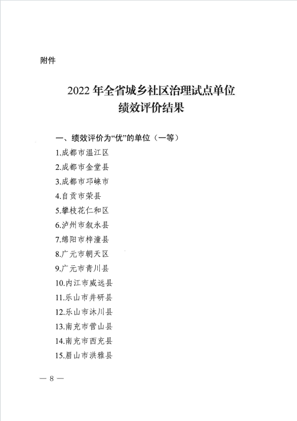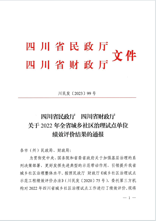 ——社区治理实现新突破。坚持以“创新治理理念、提升硬件软件、升级服务阵地、彰显特色服务、激活造血功能”为目标,以积极探索社区治理新理念、新机制、新模式和新场景为路径,突出打造便民服务型、智慧科技型和社区服务项目化示范社区,高标准高质量完成省级城乡社区治理试点,推动我区社区治理工作由“单一办事”变为“多样服务”,治理方式由“刚性约束”变为“柔性引导”,治理主体由“单打独斗”变为“多元共治”,社区服务由“站着看”变为“抢着干”的华丽蝶变,顺利通过省第三方机构绩效评价,并被省民政厅、省财政厅评定为全省城乡社区治理试点“优”的单位,朝天镇、羊木镇金台社区、朝天镇明月路社区及清风路社区被省民政厅和省委组织部确定为全省第三批基层治理示范乡镇和示范社区,《社区服务项目化管理激活基层治理“神经末梢”》被市委改革委专刊采用。争取实施东西部协作项目,建成清风路社区大中坝智慧小区,构建起“1+6+N”的“清风模式”在省级媒体广泛刊载。