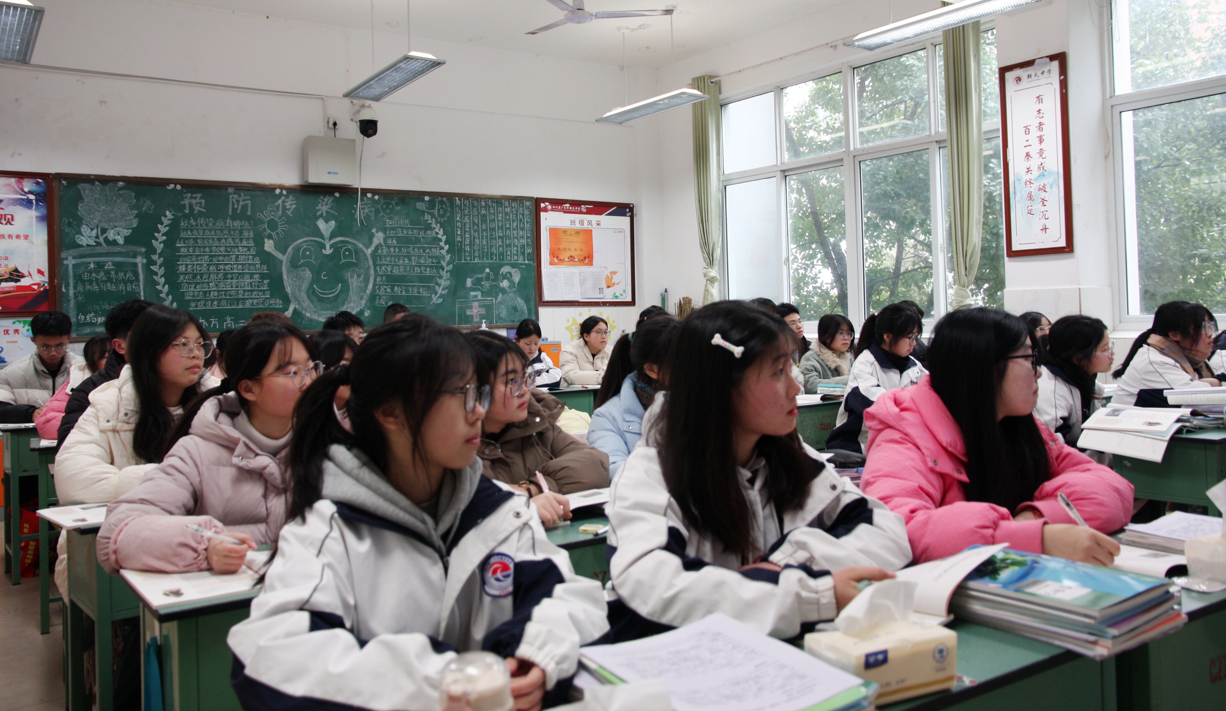 特别是在高三教室里,书本的扉页、课桌的醒目处、教室后的黑板报上,随处可见诸如“等下一支笔墨耗尽,你会离梦想更近;最美的年华,当然要最勤奋地学习;今天多一分拼搏,明天多几分欢笑……”之类的自我勉励语句。“少年辛苦终身事,莫向光阴惰寸功。”高三学生蒲友媛从书海中抬起头,浅笑着告诉记者:“现在离高考也就100来天时间,希望在接下来的这一段时间里能够继续努力,不辜负自己这12年来的辛勤奋斗。”