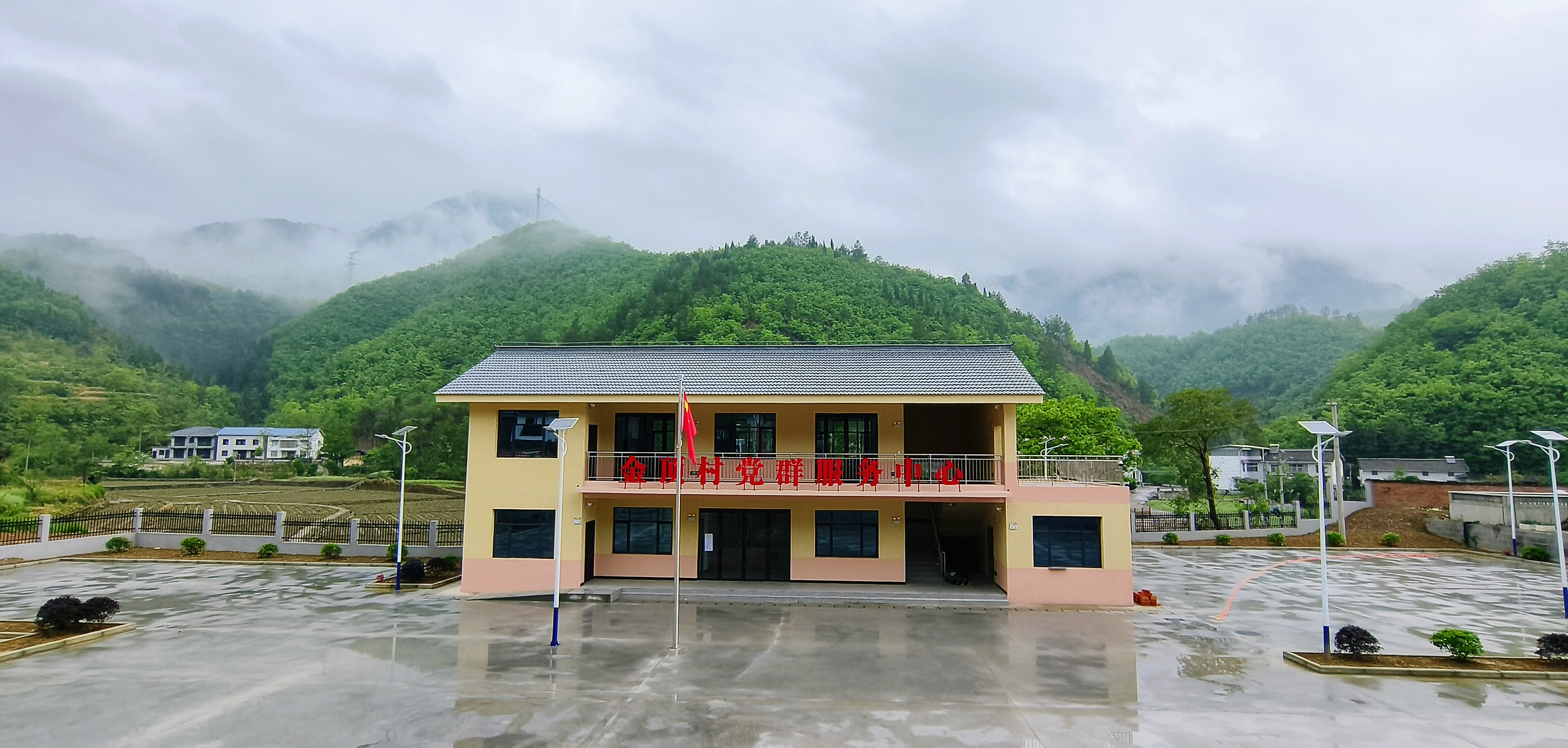 细雨中,美丽的金顶村一隅