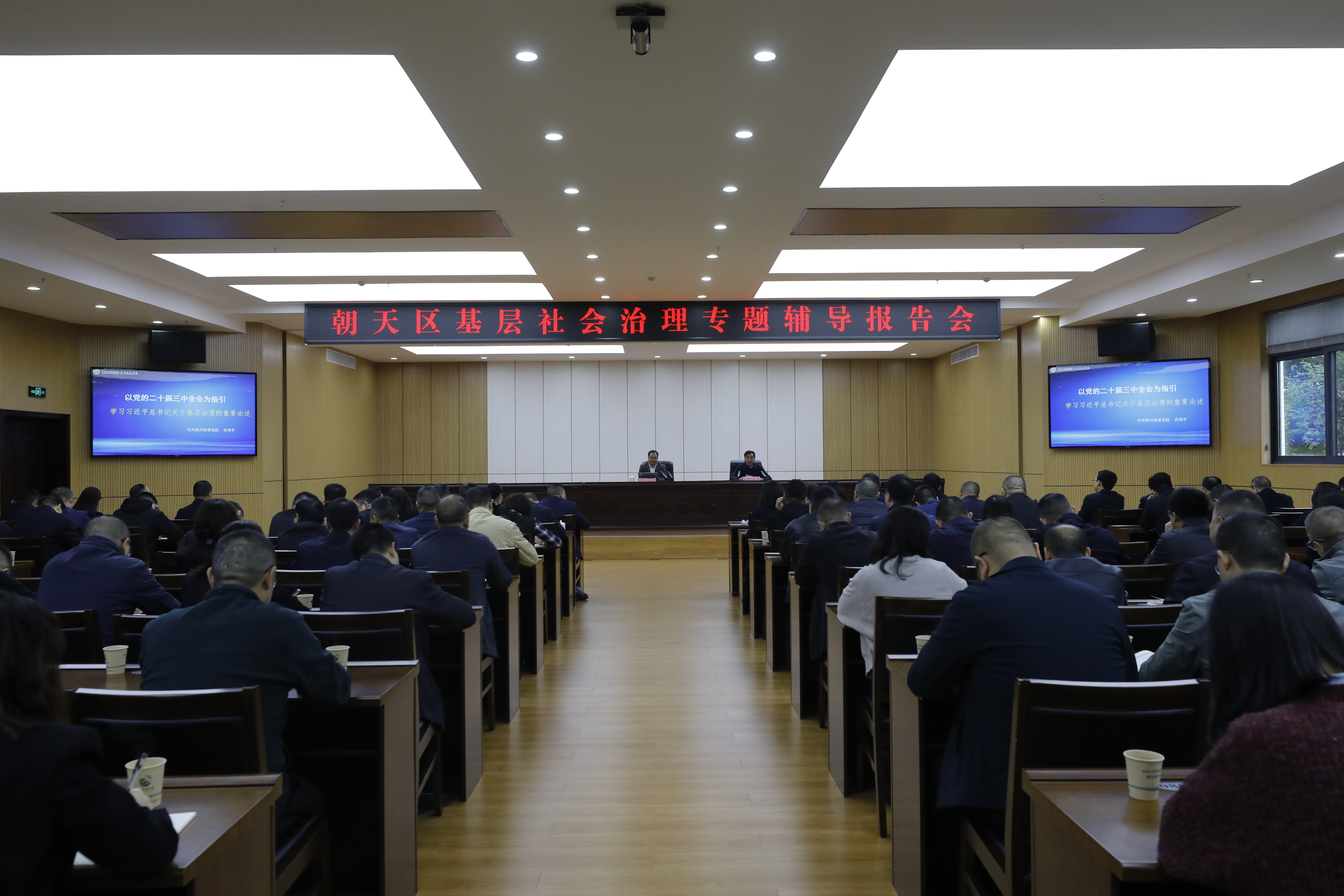 本网讯(罗玉琼)10月28日,为破解基层社会治理难题,全面提高党员干部基层治理能力,激发基层治理社会活力,我区基层社会治理专题辅导报告会暨区委理论学习中心组(扩大)学习会议召开。中共四川省委党校四川行政学院社会和文化教研部三级教授肖尧中作专题辅导报告,区委副书记、区长张骏主持报告会,区政协主席薛长勋,区委副书记强海英、郭蕾参加。