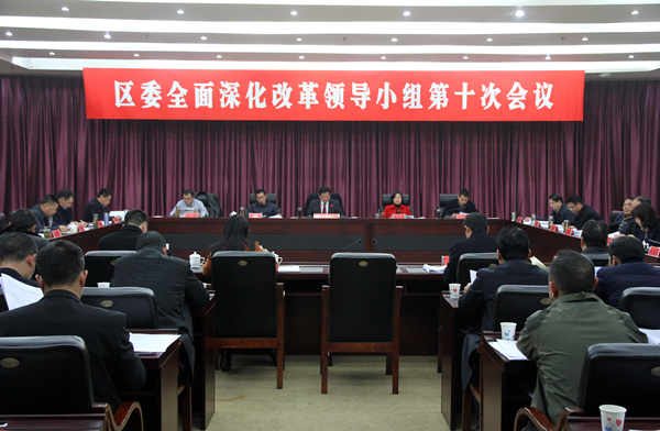 会议传达学习了中央全面深化改革领导小组第三十次会议、市委全面深化改革领导小组第十一次会议精神和中央办公厅 国务院办公厅《关于从事生产经营活动事业单位改革的指导意见》。会议要求,要认真学习领会相关会议及文件精神实质,准确把握改革新要求、新动态、新方向,并结合我区实际,在工作中抓好贯彻落实。