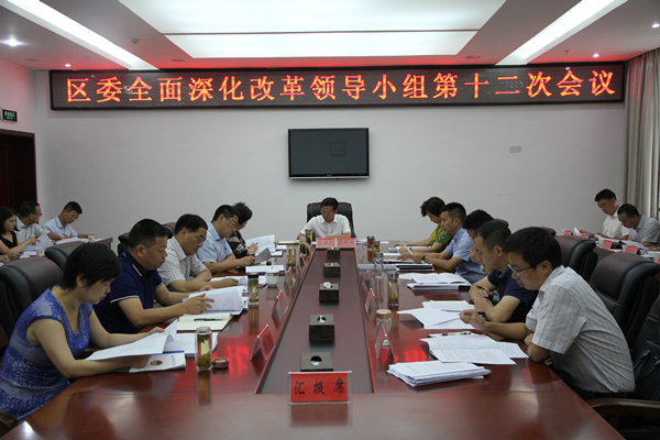 会议传达学习了中央全面深化改革领导小组第三十五、三十六、三十七次会议、省委全面深化改革领导小组第二十一次会议、市委全面深化改革领导小组第十三次会议精神。会议要求,要认真传达学习会议精神,准确把握改革新要求、新动态、新方向。各专项协调推进小组要按照中央和省委、市委部署要求,及时出台专项改革方案。区委改革办要对已经出台的改革方案经常“回头看”,确保改革方案落地见效。