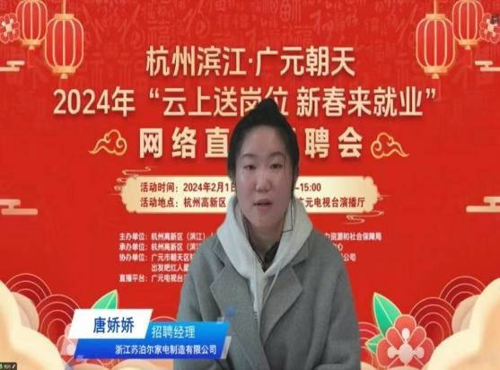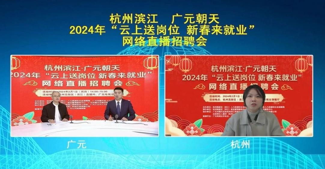 2月1日下午,广元市朝天区人力社保局联合滨江区人力社保局举办广元朝天·杭州滨江2024年“云上送岗位 新春来就业”网络直播招聘会。