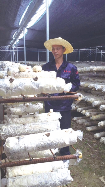 图为6月9日,基地现场管理人员采摘猴头菇。
