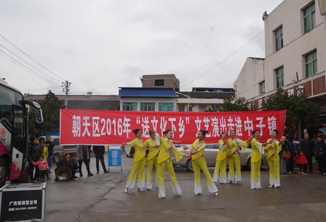 11月1日,由区文广新局主办,区文化馆承办,中子镇协办的朝天区2016年 “送文化下乡”文艺演出活动,在中子镇场镇热闹上演,将丰富多彩的节目、“精准扶贫”政策知识送到群众家门口,鼓舞大家凝心聚力推动精准扶贫工作。