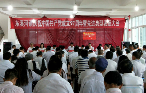 6月26日上午,东溪河镇开展“七一”庆祝大会,以实际行动向党的97周岁华诞献礼。东溪河镇全体镇村干部、各村第一书记、在家党员共计120余人参加庆祝活动。