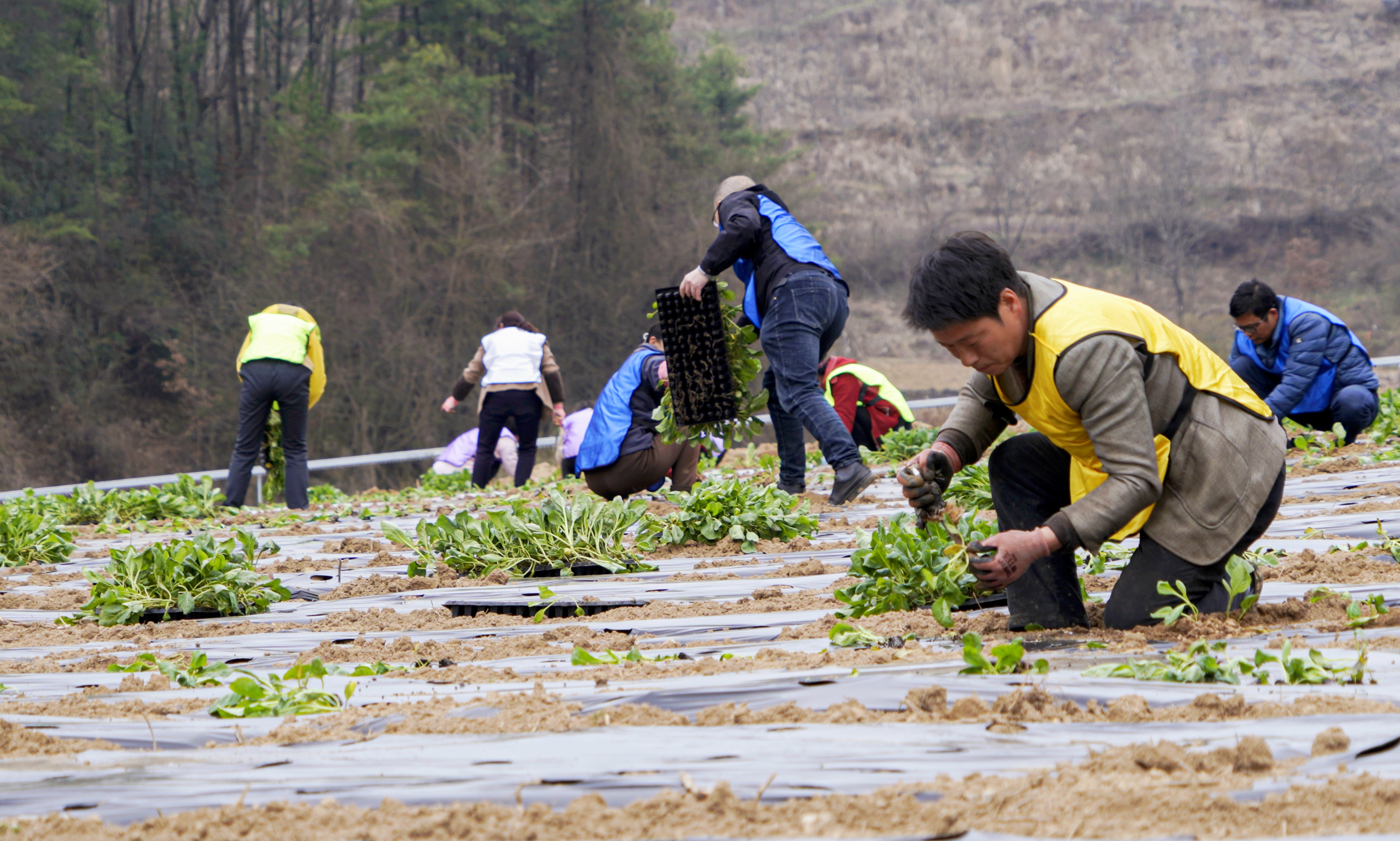 施肥、覆膜、移栽……4月7日,在两河口镇惠农蔬菜专业合作社蔡家咀蔬菜种植基地,数十名群众正忙着将甘蓝苗从大棚里移栽到露地上,在大家的有序分工和默契配合下,一垄垄土地被相继栽种上翠绿的甘蓝苗,在微雨的浸润下,叶片舒展,生机盎然。