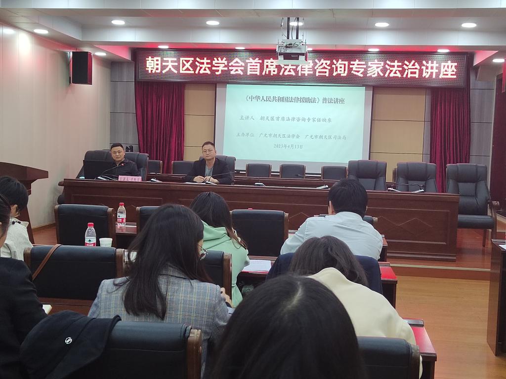4月13日,朝天区法学会举办首席法律咨询专家法治讲座,由朝天区首席法律咨询专家解读《中华人民共和国法律援助法》,着力为促进社会公平正义和推进法治朝天建设贡献力量。