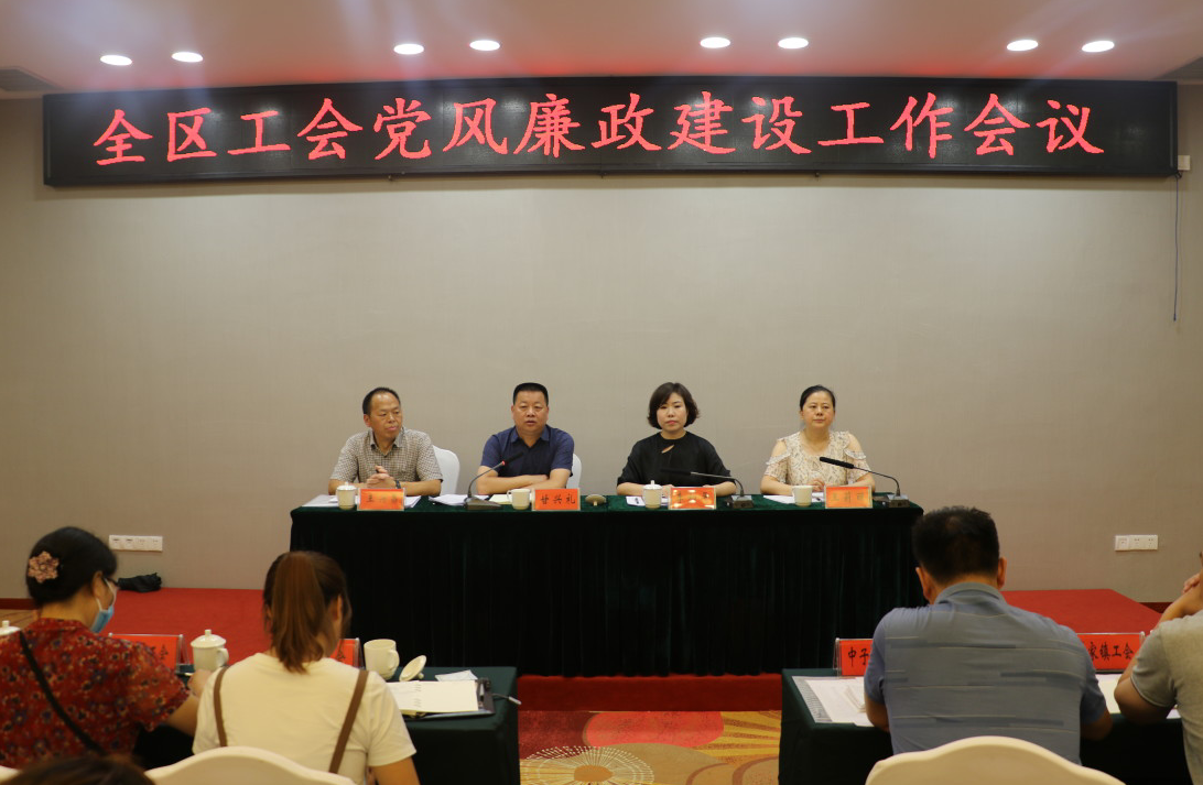 7月30日,区总工会组织召开全区工会党风廉政建设工作会议,传达学习全省、全市工会党风廉政建设工作会议精神,安排部署下一步全区工会党风廉政建设工作。区委常委、区委政法委书记、区总工会主席甘兴礼出席会议并讲话。