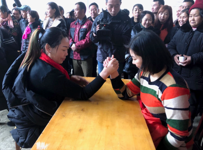 活动当天,天气寒冷,天空还飘着小雨,但运动会现场却是锣鼓声声、热闹非凡。赛前,父老乡亲们踊跃报名,男的女的、老的少的都积极热情地参与到象棋、跳绳、掰手腕、斗鸡、齐心协力、拔河等项目中。