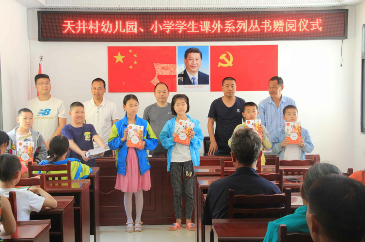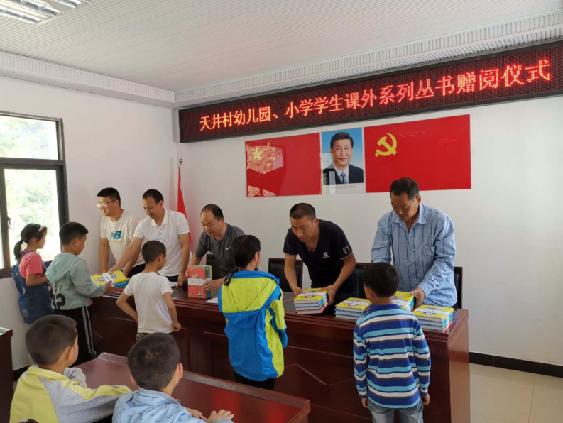 据悉,天井村共有幼儿园学生4名、小学生32名,其中贫困家庭学生7名。为充分发挥“智力”帮扶在脱贫攻坚工作中的重要作用,进一步筑牢幼儿园、小学学生学习的主动性和积极性,积极培养“读好书、好读书”的学习习惯,全力营造贫困村学生乐观健康、积极向上的学习态度,区经信局向结对帮扶的陈家乡天井村36名幼儿园、小学学生赠阅了课外系列丛书。