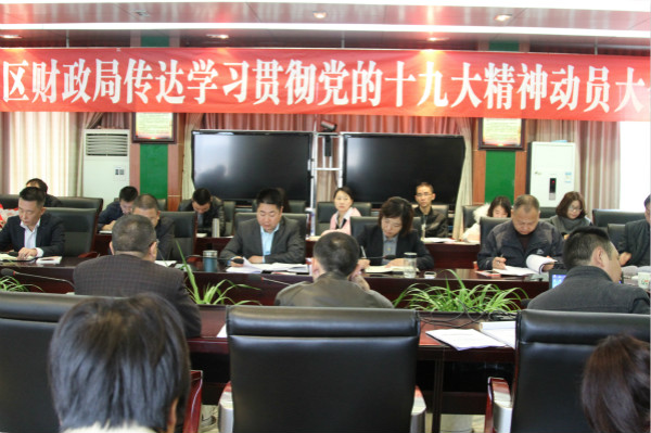 为进一步统一思想,凝聚共识,以党的十九大精神为指引,全面贯彻落实十九大精神,近日,区财政局组织全体干部职工认真学习十九大精神,做到全方位理解、深层次把握、多形式促进,把学习贯彻落实会议精神作为全面完成2017年目标任务、促进财政工作质效提升的重要检验,把学习贯彻党的十九大精神体现在工作上、落实到行动中,并结合实际工作作出了具体的安排部署。