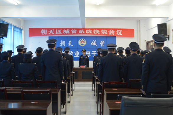 11月28日,区城管局举行城市管理执法制式服装换装仪式。换装仪式在庄严的国歌声中拉开序幕,41名干部职工(含协管)着全国统一新式制服参加,充分展现了朝天城管人员新面貌。