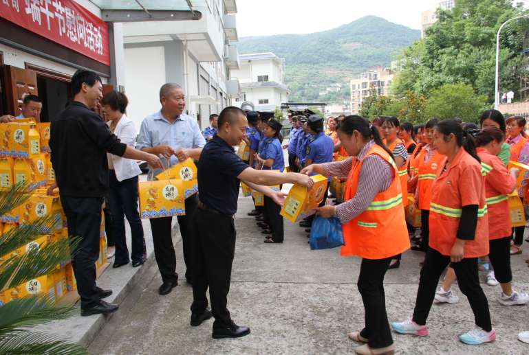 6月6日,在区文明办的组织下,广元市朝天区学雷锋爱心联盟、广元市中子越龄食品有限责任公司联合举办端午节慰问活动,向为创建文明城市作出积极贡献的城市管理执法人员、环卫工人送去慰问品和节日的祝福,表达最衷心的感谢。区文明办、区综合行政执法局主要负责人和相关工作人员参加活动。